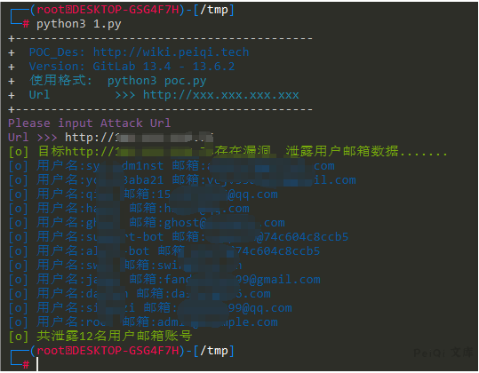 成功返回数据,造成 Gitlab的用户邮箱信息泄露