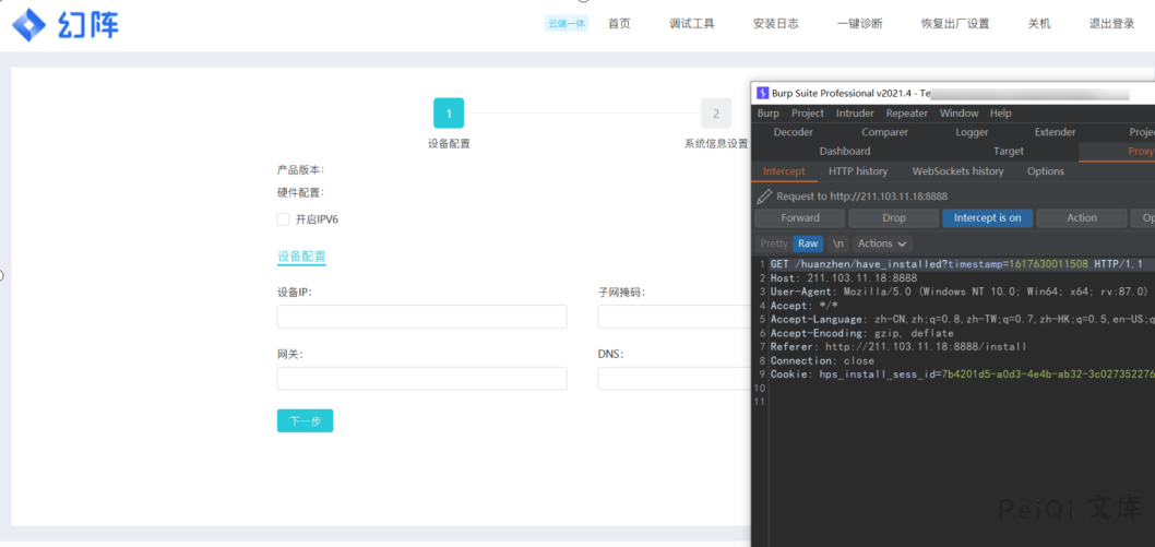 默安 幻阵蜜罐未授权访问 RCE棉花糖2021年7月27日发布关注私信0150 # 默安 幻阵蜜罐未授权访问 RCE ## 漏洞描述 默安 幻阵蜜罐存在部署页面未授权访问 ,可执行任意命令 ## 漏洞影响 > [!NOTE] > > 默安 幻阵蜜罐 ## 漏洞复现 产品页面 安装页面如下 默安 幻阵蜜罐 刷新并抓包 Drop掉 **/huanzhen/have_installed?** 进入页面 点击调试抓包 执行其他命令 点击一键诊断泄露 IP数据 © 版权声明文章版权归作者所有,未经允许请勿转载。THE END漏洞库 喜欢就支持一下吧点赞0赞赏 分享QQ空间微博QQ好友海报分享复制链接收藏