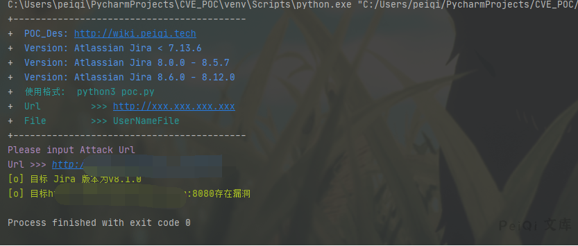 vuln_url = target_url + “/secure/ViewUserHover.jspa?username=peiqipeiqipeiqi”