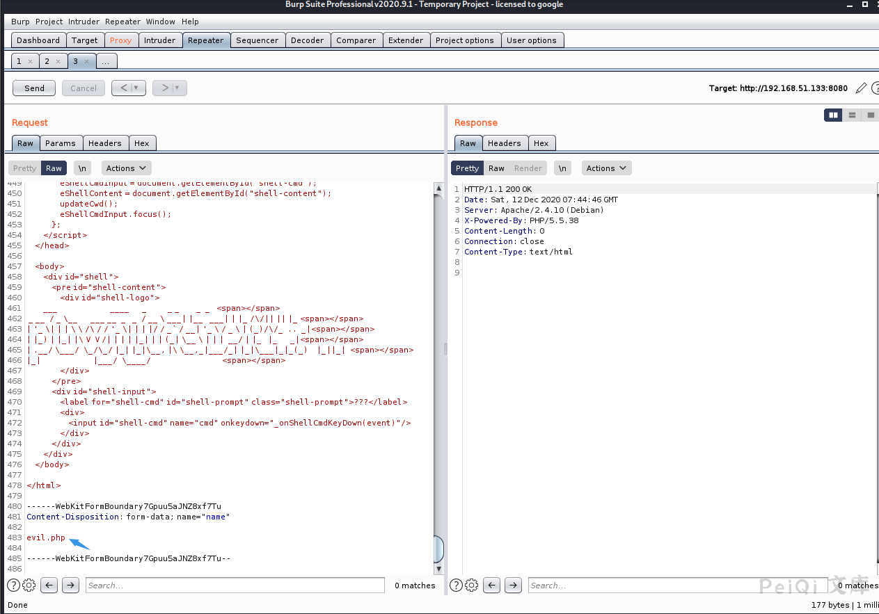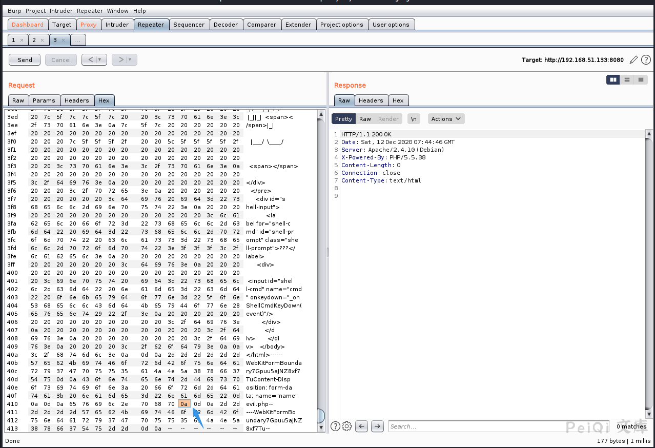 访问 http://xxx.xxx.xxx.xxx:8080/evil.php%0a 成功触发解析漏洞