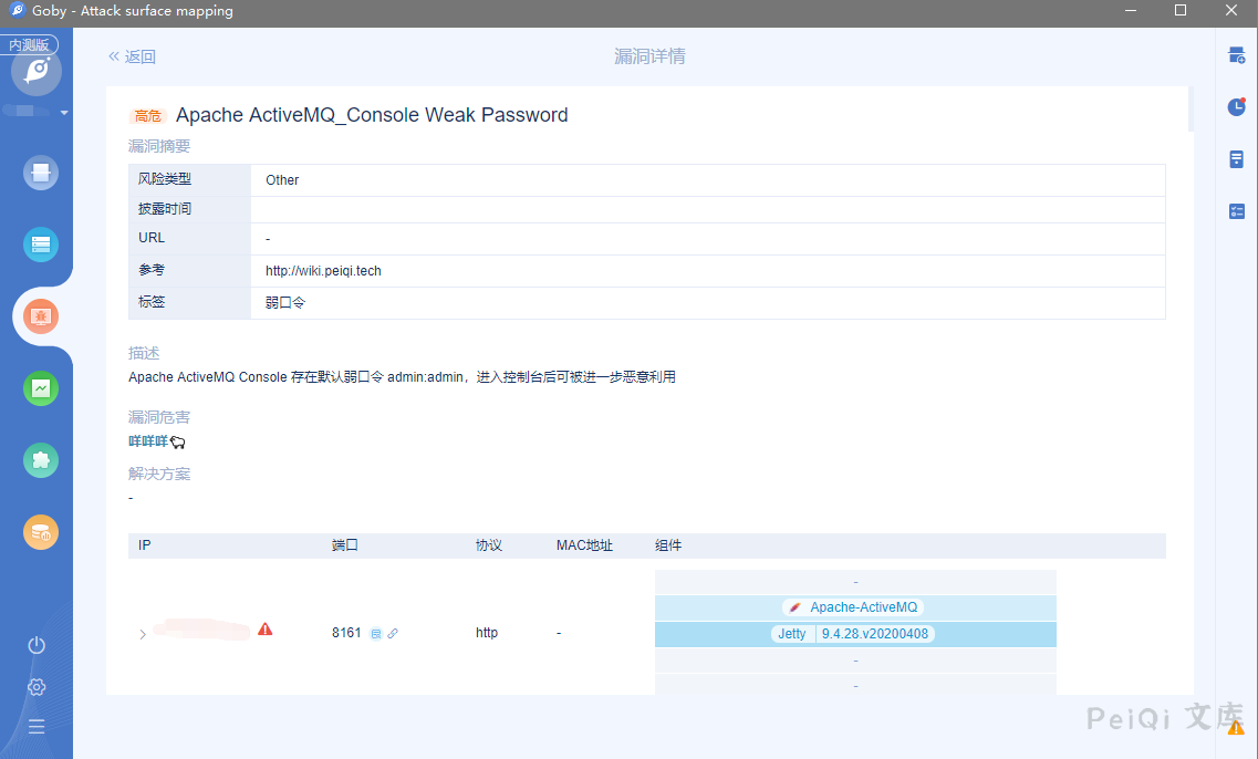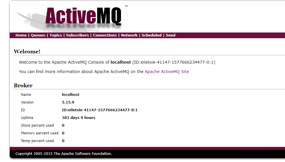 Apache ActiveMQ Console 存在默认弱口令 admin:admin,进入控制台后可被进一步恶意利用