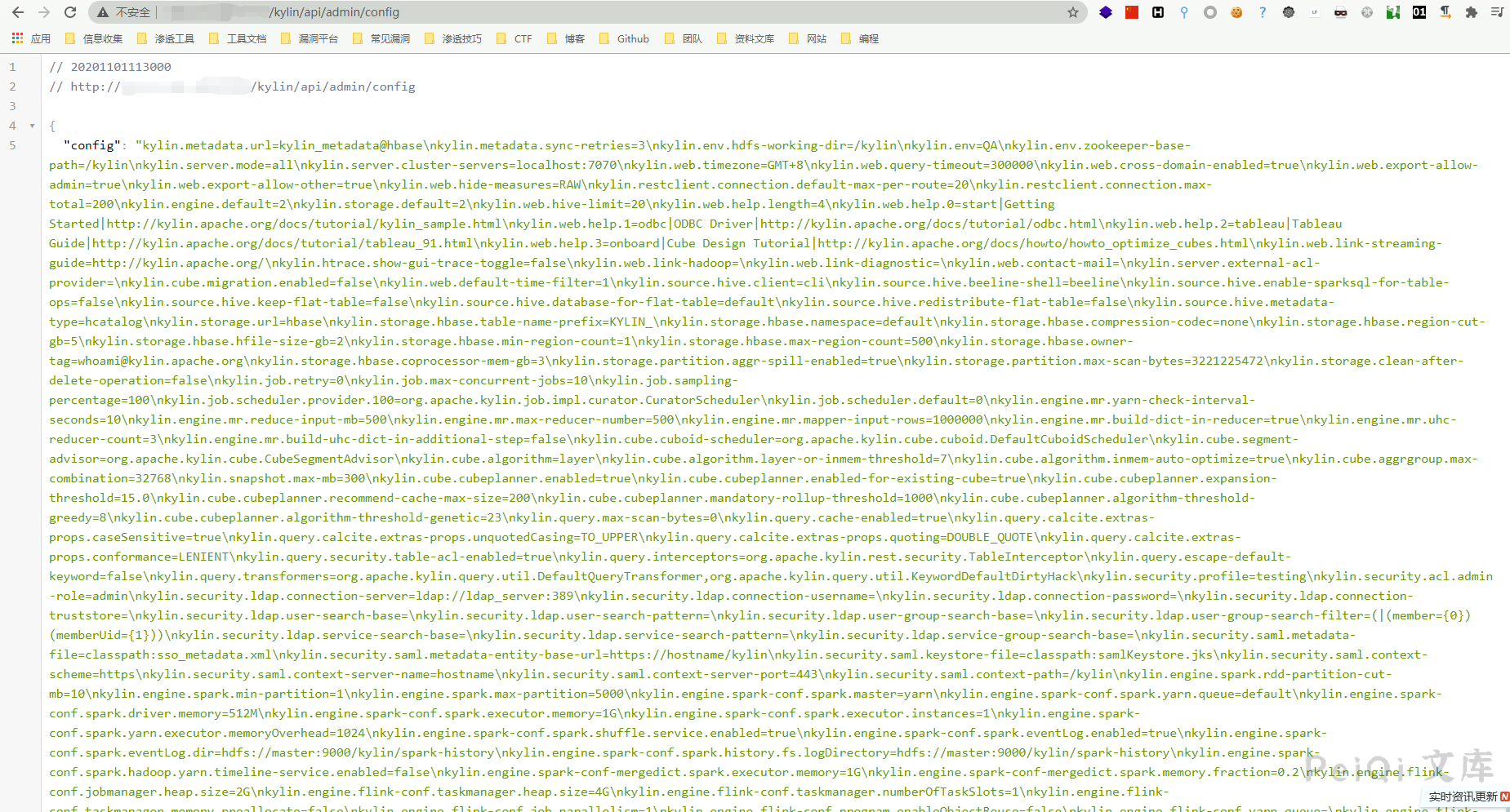 # Apache Kylin的未授权配置泄露 CVE-2020-13937