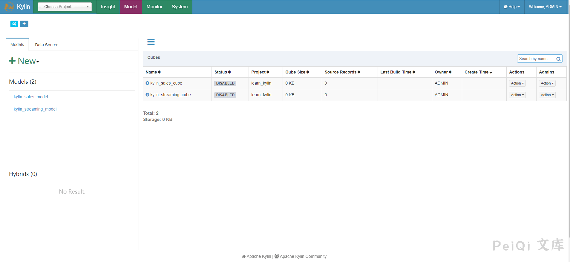 打开后使用默认账号密码**admin/KYLIN**登录,出现初始界面即为成功
