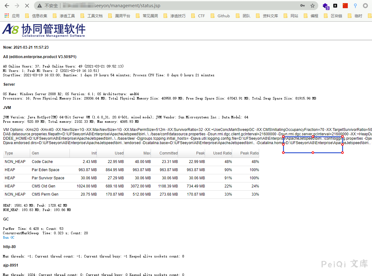 http://xxx.xxx.xxx.xx/seeyon/management/status.jsp