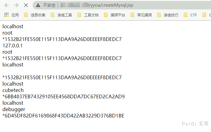 当访问如下URL时执行了SQL语句 **select * from mysql.user;** 进行查询并返回到页面中