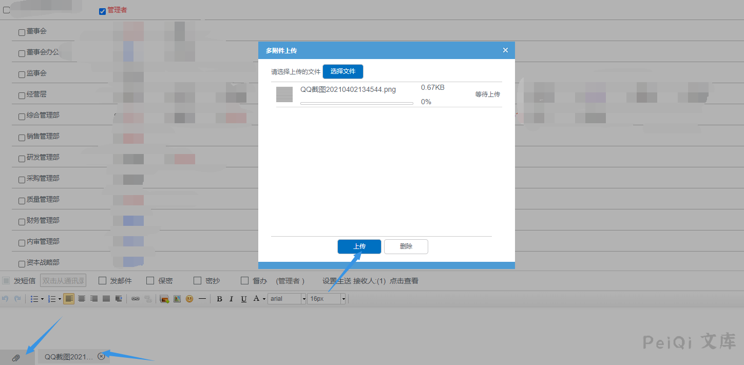 上传附件并上传发送给目标