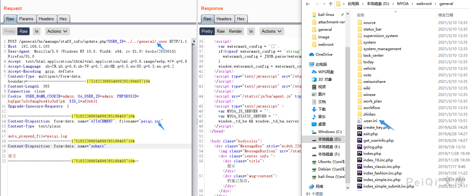 由于通达OA 的文件上传限制的死死的,所以我们可以通过利用 PHP的 **.user.ini** 文件来包含其他文件,这里是可以用于包含XSS语句的文件的,所以我们上传文件