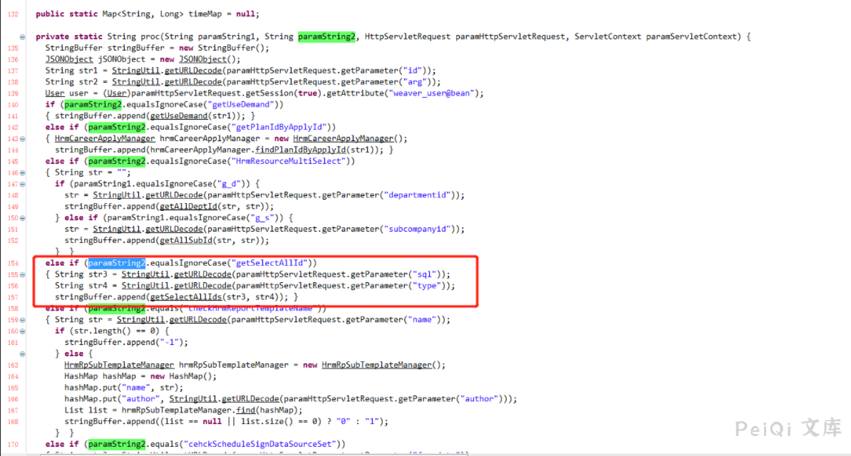 在proc方法中,对cmd参数值进行判断,当cmd值等于getSelectAllId时,再从请求中获取sql和type两个参数值,并将参数传递进getSelectAllIds(sql,type)方法中