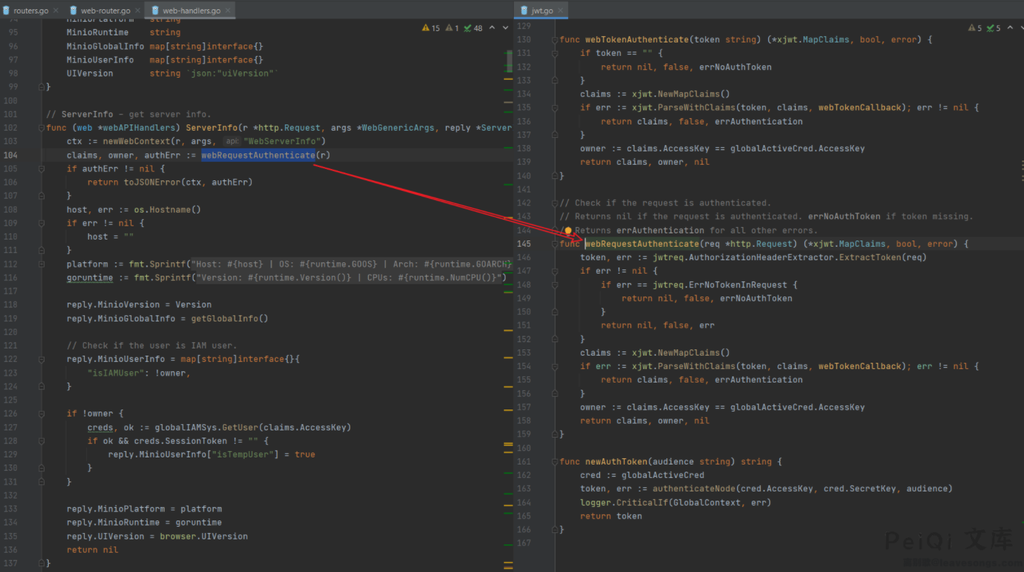 我们感兴趣的就是其鉴权的方法,随便找到一个RPC方法,可见其开头调用了`webRequestAuthenticate`,跟进看一下,发现这里用的是jwt鉴权: