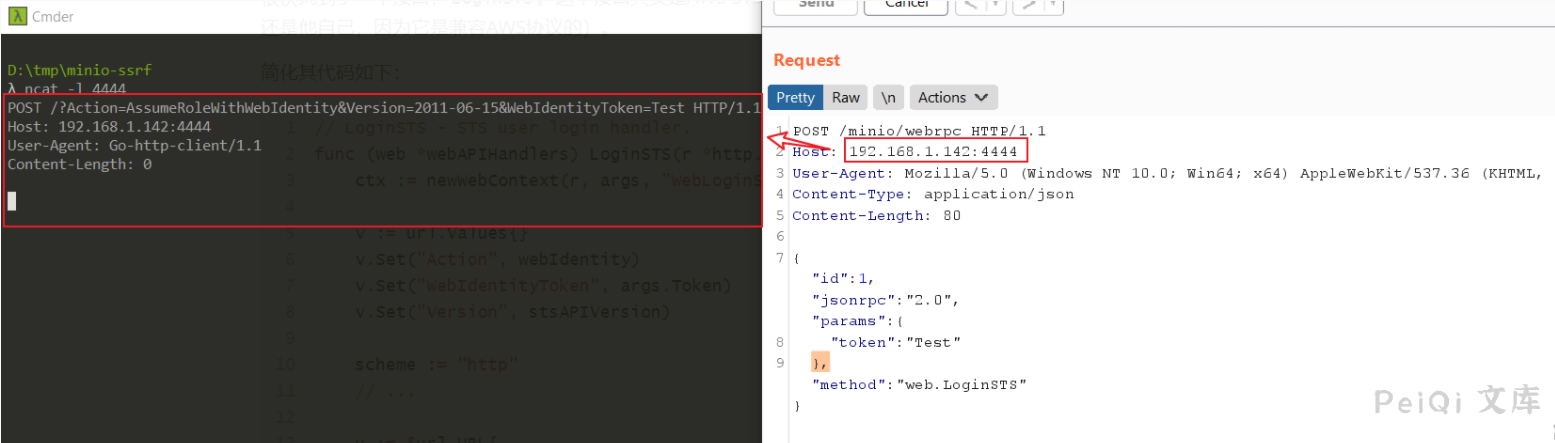 很快找到了一个接口,`LoginSTS`。这个接口其实是AWS STS登录接口的一个代理,用于将发送到JsonRPC的请求转变成STS的方式转发给本地的9000端口(也就还是他自己,因为它是兼容AWS协议的)。