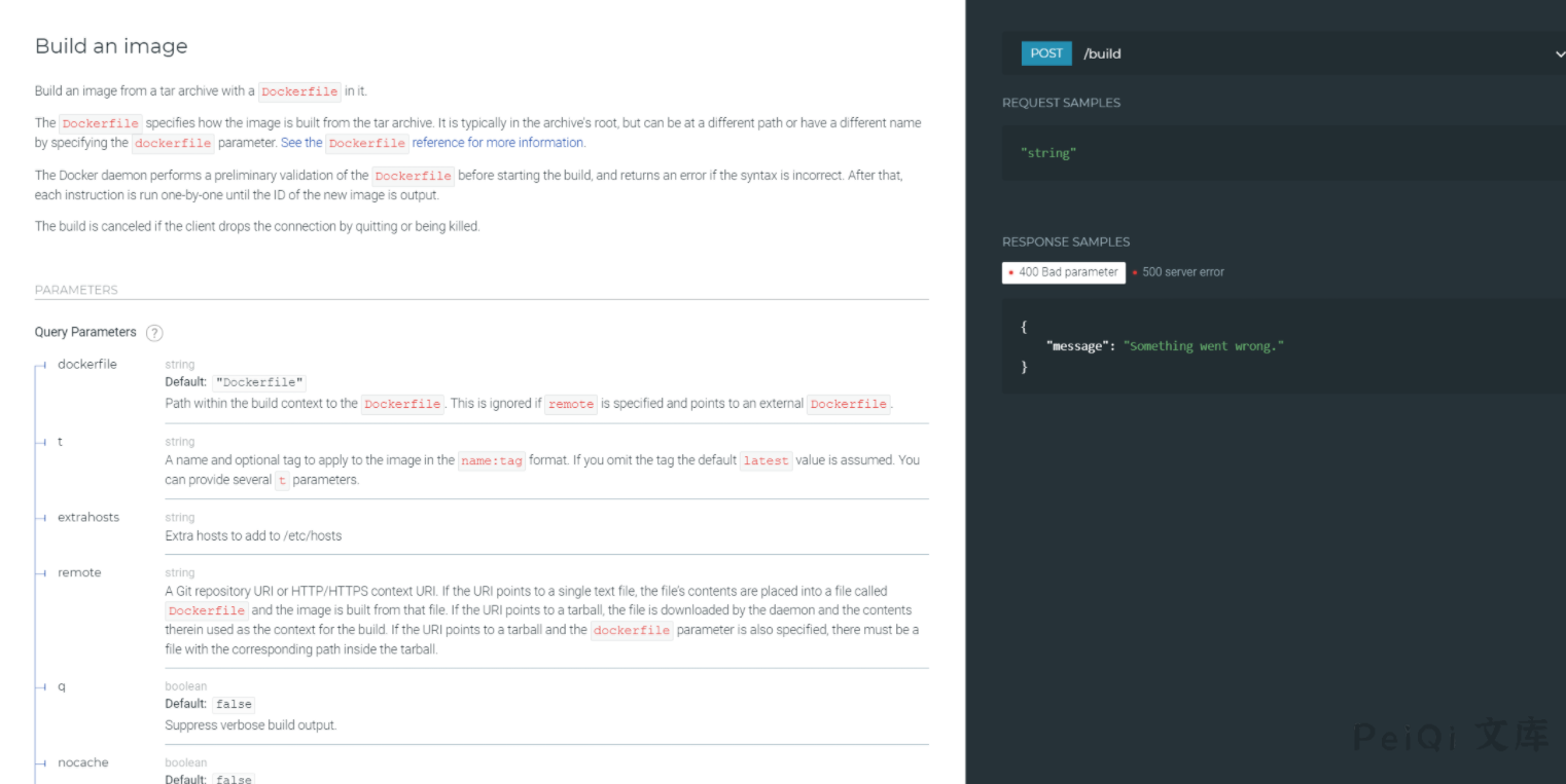 继续翻越Docker文档,我发现了另一个API,[Build an image](https://docs.docker.com/engine/api/v1.41/#operation/ImageBuild):