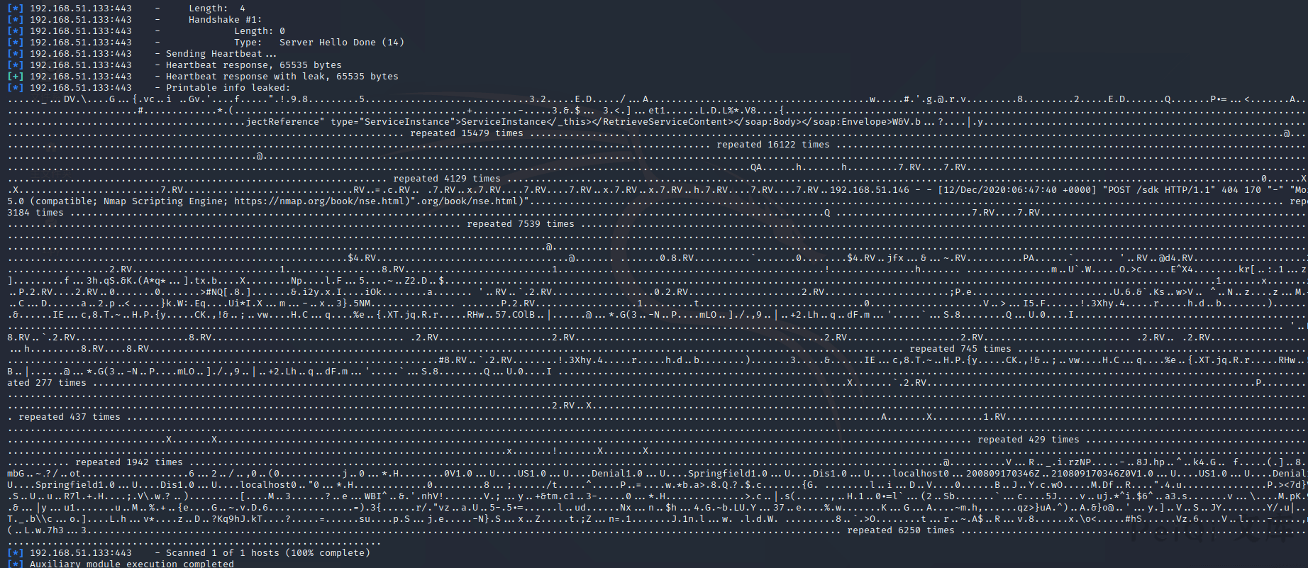 [+] 192.168.51.133:443 – Heartbeat response with leak, 65535 bytes
