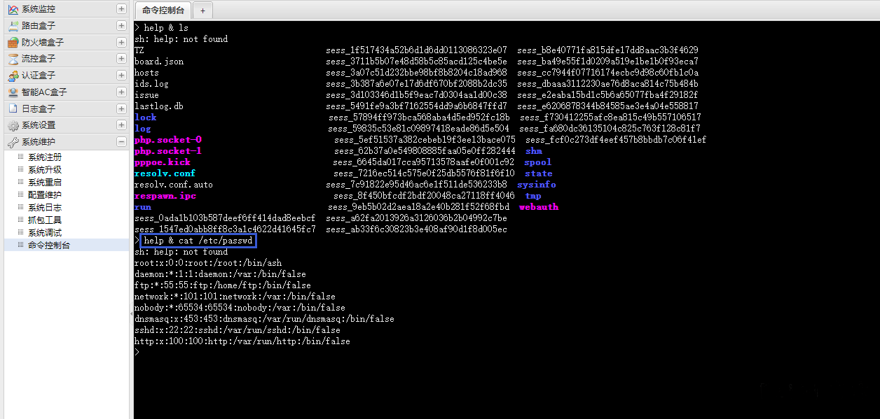 可以使用 **help & sh** 得到交互式命令写入恶意文件