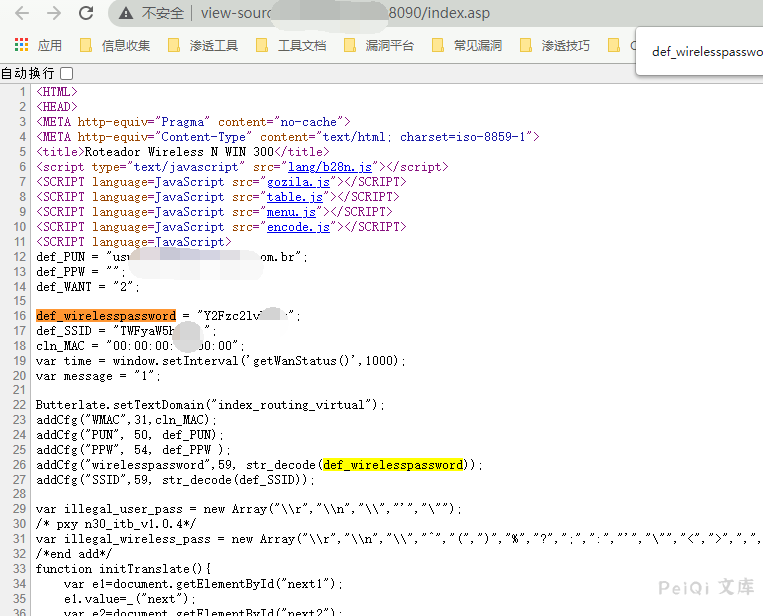 查看网页源代码,泄露了配置密码