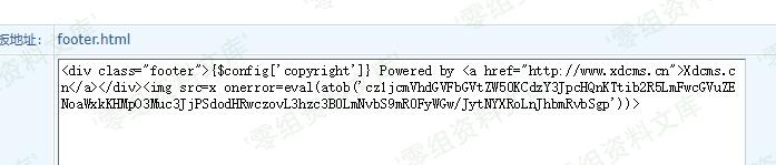 漏洞文件:`system\modules\xdcms\template.php`,URL:`index.php?m=xdcms&c=template&f=edit&file=footer.html`